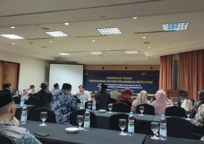 Acara yang dihadiri oleh berbagai unsur Pimpinan Perguruan Tinggi Keagamaan Islam Swasta (PTKIS) di wilayah Jakarta dan Banten yang diikuti sekitar 50 orang Peserta. Bimtek tersebut dibuka oleh Dr. Thobib Al-Asyhar selaku Kasubdit Kelembagaan dan Kerjasama. Dalam sambutannya disampaikan setiap PTKIS perlu meningkatkan mutu untuk persiapan Go International.